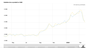 Le lingot d’or reste pour la seconde fois à 26 500 euro à Paris alors qu’il est sur le point de passer 26 800 euros à l’international. L’once d’or tourne autour de 1140 dollars US soit une contrevaleur de 833 euro.
